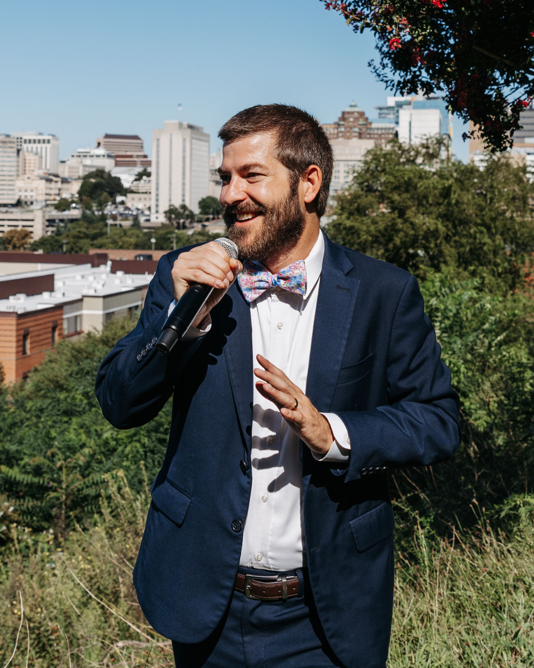 Oh hey gang, I'm Matthew the Bow Tied DJ for Completely Celebrated™ weddings and events. I've been hosting parties since I was a teenager in Richmond, Virginia. Right out of high school, I got started entertaining local bars and college parties, where I discovered a niche with sorority formals. At the same time, I started working with a live event production company, learning technical skills related to sound, lighting, video, and creative design. After a few years gaining experience, I entertained my first wedding and I was hooked.